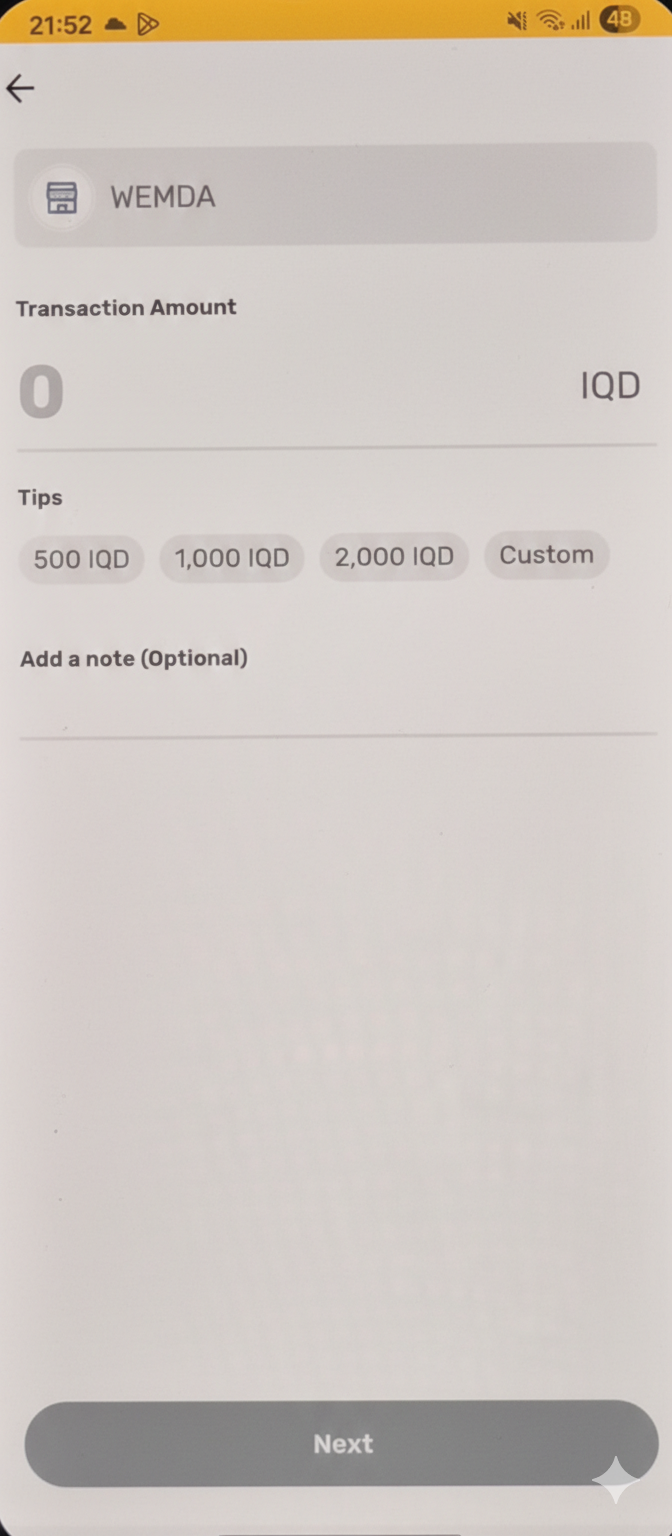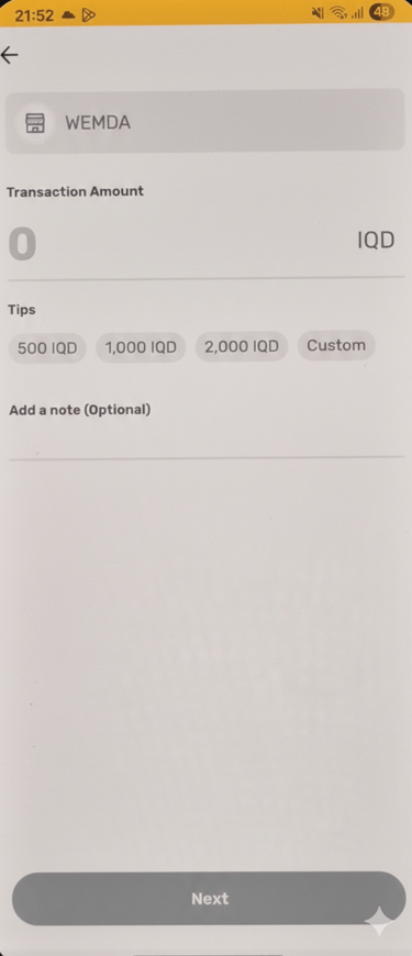 Enter the same amount displayed on the WEMDA payment page in Iraqi Dinar (IQD).