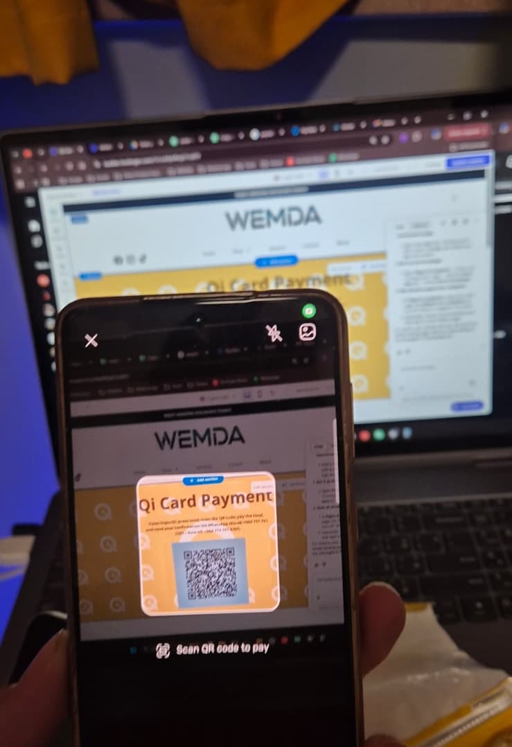 Open SuperQi, Scan the QR code, pay the total, and put your number at the note section, or send it to this number +964 751 761 2201 on the app