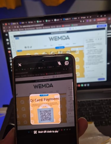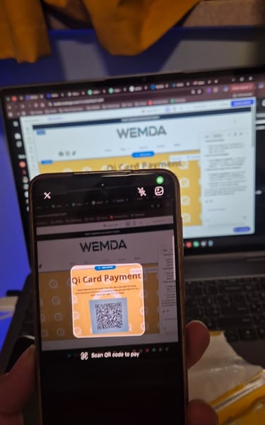 دوای دابگرتنی «Scan QR»، کامێراکەت ئاراستە بکە بۆ QR کۆدی پارەدانی کارتـی Qi لە پەڕەی پارەدانەکەمان. بڕی پارەکە پێداچوونەوە بکە و «Confirm» دابگرە بۆ پارەدان.