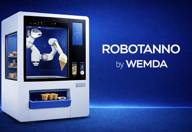 RobotAnno هو جهاز آيس كريم روبوتي بالكامل يقوم بتحضير الآيس كريم الطازج تلقائياً خلال دقائق.